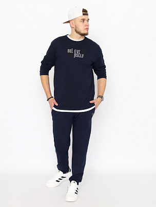 Джемпер мужской прямого силуэта. Круглая горловина обработана узкой притачной обтачкой из рибаны с эластаном. Полочка декорирована принтом.